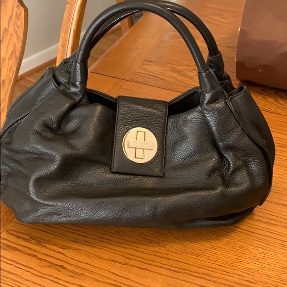 Genuine leather pebbled black gold turn lock Kate Spade satchel Great condition