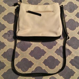 GUC 10”Wx9”H White and Black Nicole by Nicole Miller Handbag. Pink Lining. Zipper Closure. Button pocket on front. Zipper pocket on back. Zipper pocket and open pockets in interior.