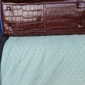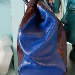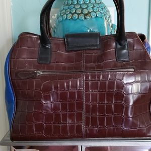 Brown crocodile embossed leather and beautiful blue side panels! On the large side😊