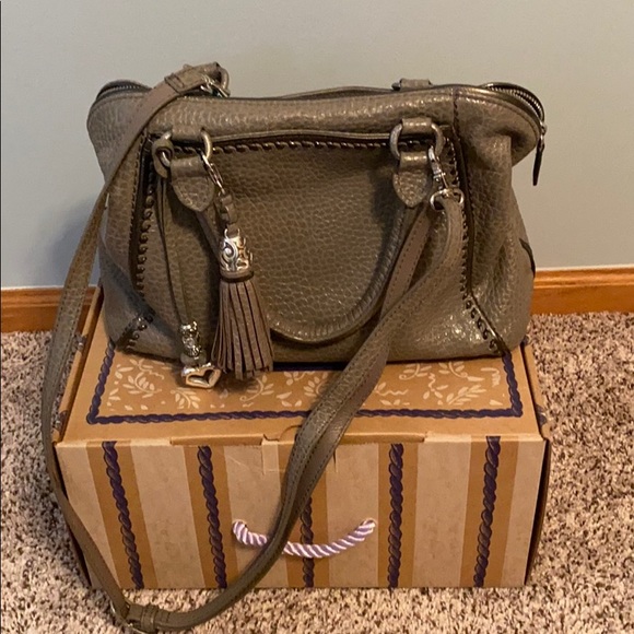 @facecream hi there. It is genuine leather. The color is like a greige...almost taupe. It is roughly 12" wide and 10 "tall.