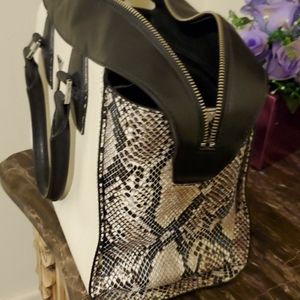 No the handbag is Black and White with Snake skin sides