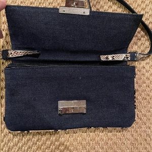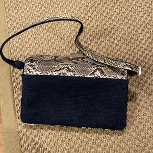 Small handbag from London, England. Real snake skin and denim. Very hip and trendy.