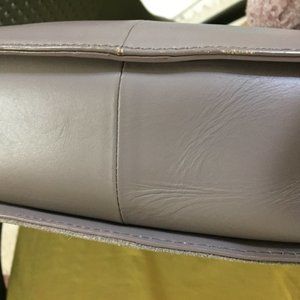 Naturalizer brand handbag, 100% outer leather; taupish-violet color; polyester material fully lined inside; zippered pockets and lined pockets. Bag approx. 9.5 inches tall; handle approx. 12 inches in length; with approx. 2 inches wide @ center; approx. 1 inch wide @ each end; bottom of bag approximately 3inches wide. Only used once for showpiece.