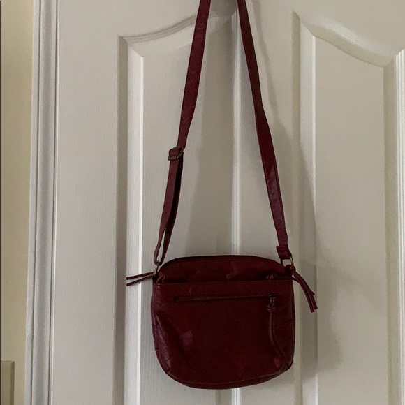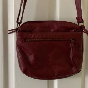Maroon soft 4 zipped pockets. No rips or stairs. Leather like