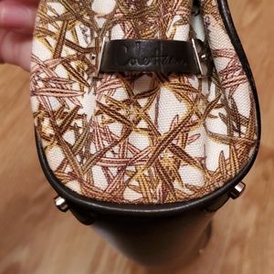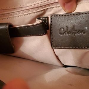 Used,no tearing,clean,little bit searched on four corners,please look at the pictures,three compartments,middle one has zipper,one interior pocket with zipper, other two pockets no zipper,one owner ,from a clean and smoke free home,thank you looking at my closet !!!