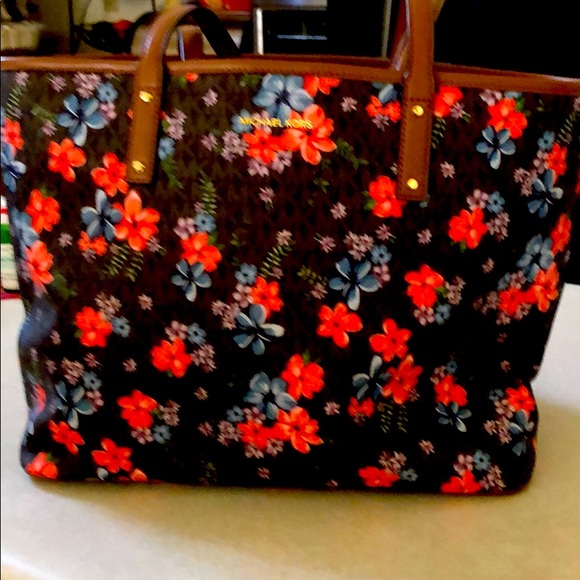Michael Kors Tote that features a floral pattern, glossiness accents and a spacious design that allows you to keep all your must-haves items nearby. Measurements as follows 16.5” W x 11.5” H x 6 D 10”shoulder strap, interior one zip and 8 slip pockets