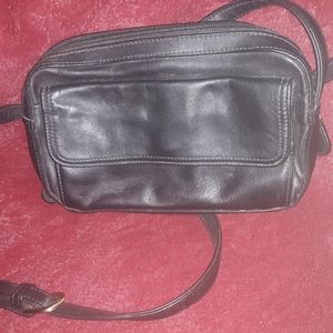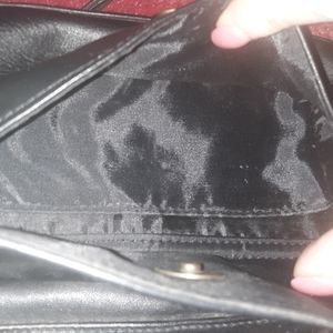 Black leather handbag small with shoulder strap, no damage or holes