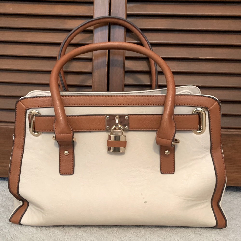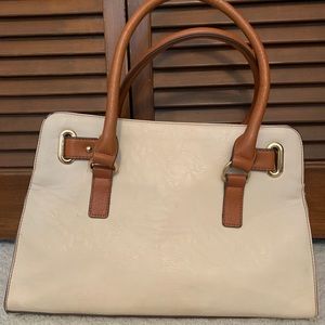 Cream and tan handbag!! Perfect size and has plenty of pockets!