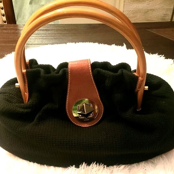 Black woven KATE SPADE bag with bamboo handle. Gently used, great for the spring. Comes with dust bag.
