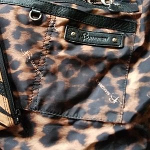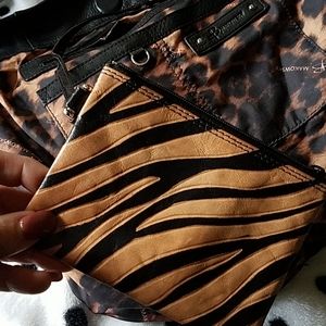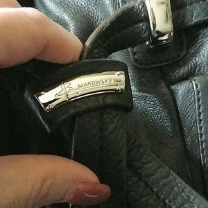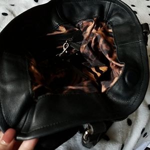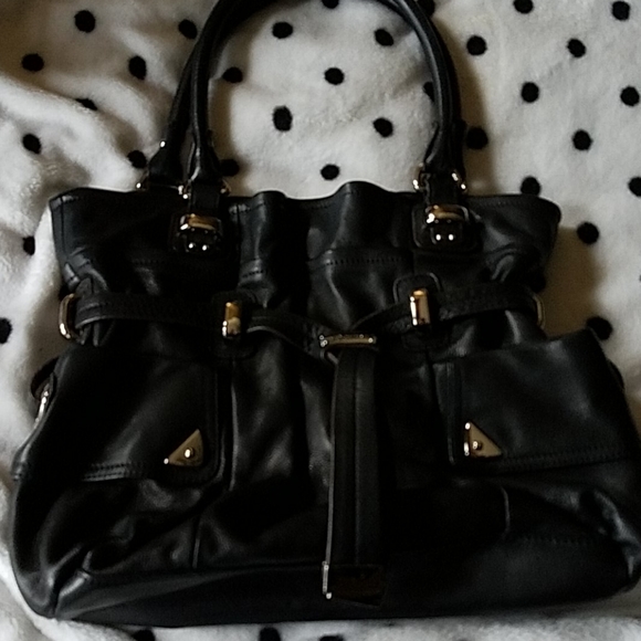Black & silver very well kept this is fun and very stylish bag that holds a lot of stuff very clean . Real leather very soft.