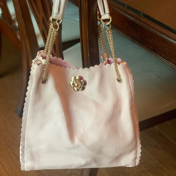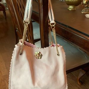 Light pink soft faux leather Gold accessory handbag