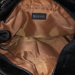 New purse with zipper closure and metal snap on the front too . Has zipper inside and two pockets inside . Never used not leather .