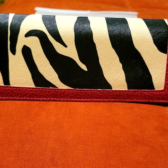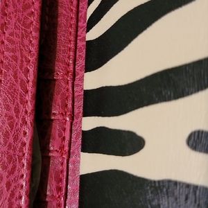 Another hot wallet. This one is pink, black, and cream. Faux cowhide. The perfect gift ๐. Holds credit cards, money, check book, and my Galaxy phone fits in there!!!. Winning. Brand new merchandise.