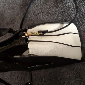 Pretty Black and white handbag with shoulder strap. Vegan leather.