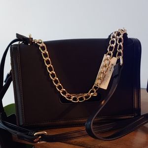 Black chain strap crossbow evening handbag. 9.5"w x 6"h