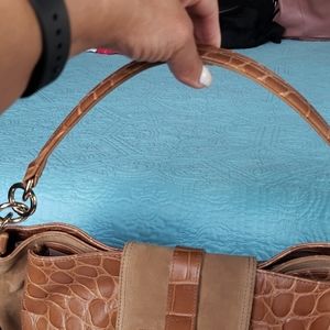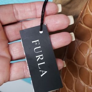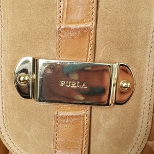 NWT furla handbag 👜 Tan leather and suede. On the large side.3 spacious compartments .Gold hardware