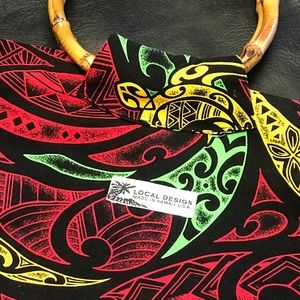 Handbag made in Hawaii with bamboo handles Hawaiian made cloth material