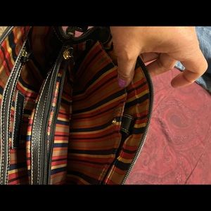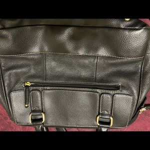 Classy leather bag with multiple inside and outside compartments. Great inside condition. Handles somewhat worn.