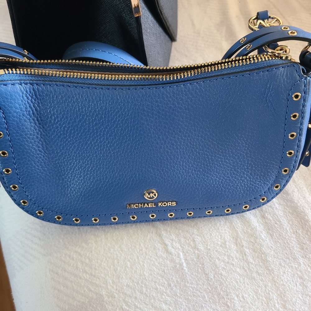 not much of a purse person so I apologize if the description it's incorrect. brand new riveted baby blue hand MK purse