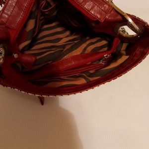 Red white black ladies handbag