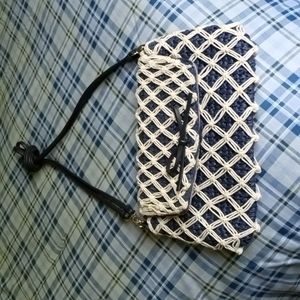 Adorable, nautical looking handbag. Can wear on shoulder or crossbody. Gently used. Excellent condition.Can remove straps to use as clutch. Navy and cream.