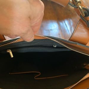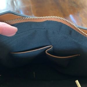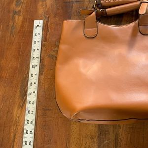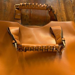 Faux leather handbag. Never used. Excellent condition! 1 zipper pouch. 2 small pockets.