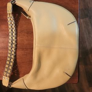 yellow pebbled leather handbag with card insert. color transfer on bottom. pls refer to 1st pic.