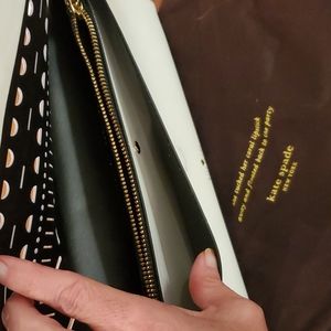 Kate Spade white leather clutch with cool cut out design work. Magnetic closure. Has 3 pockets inside including 1 full zipper one. Perfect condition! Zero marks or fading! 12"w x 6.5"h size