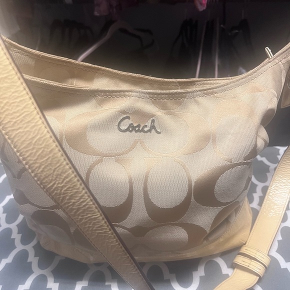 Shoulder bag, with adjustable strap. Medium size. Good condition. Canvas and leather.