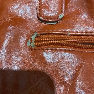 Great fall color orange handbag with shoulder strap! A couple signs of wear…as pictured!