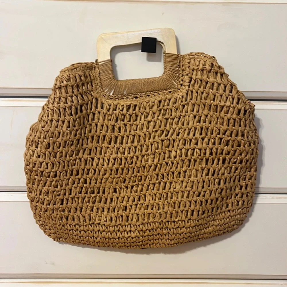 Tan woven summer handbag. NEVER USED!!!!