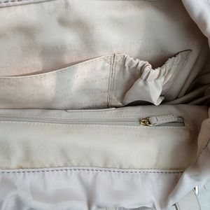 leather handle. Has front pocket and another pocket inside. This is rare and authentic. Double check photos for the details.