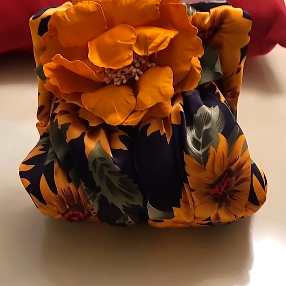 Colorful satin print handbag with a corded strap inside. Can be worn as a Clutch or on the shoulder.