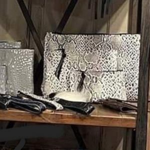 Cowhide handbag, has strap to convert to backpack. Comes with all accessory bags.