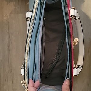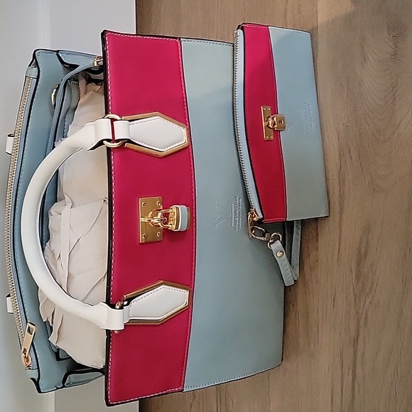 selling a brand new never used fashion handbag with matching wristlet. does not come with a shoulder strap