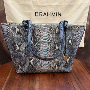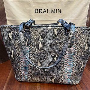 BRAHMIN lizard embossed textured blue, black and silver bag. Picture speaks for itself. Excellent condition inside and out.