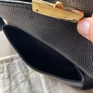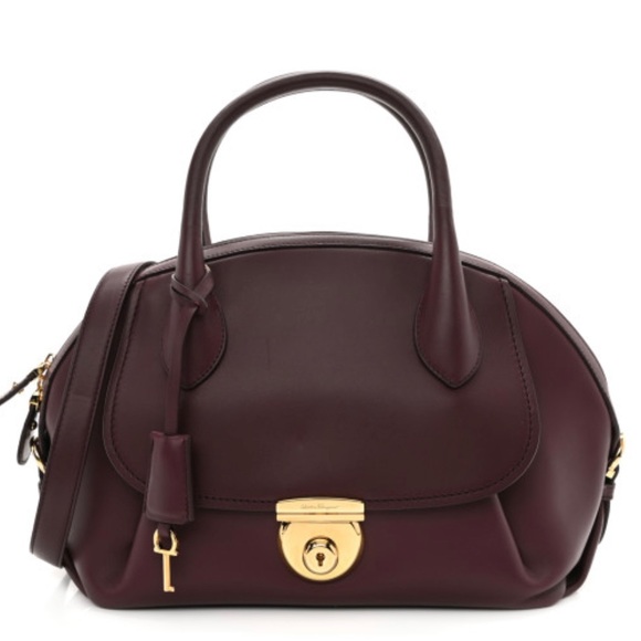This is an authentic SALVATORE FERRAGAMO Calfskin Fiamma Bag in Rouge Black. This chic small shoulder bag is finely crafted in black calfskin leather. The bag features a frontal flap with a lock closure. This opens to a matching satin interior with a zip pocket.