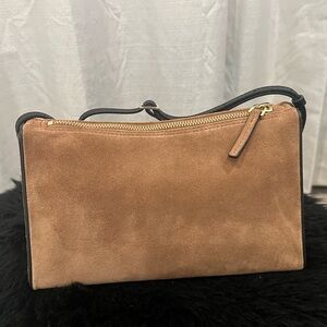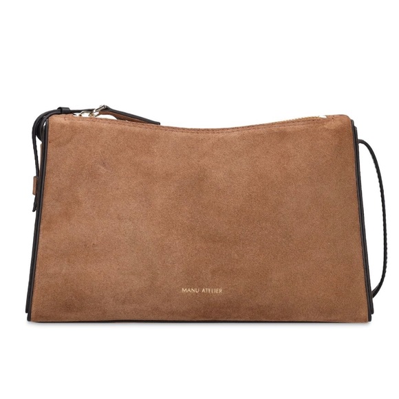 It’s suede bag with thin handles that are black !it’s a prism bag !Very beautiful for fall / winter