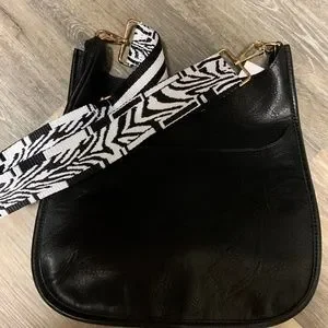 Brand new Black vegan leather handbag with fun, interchangeable strap! 12”x12”.