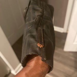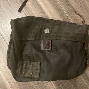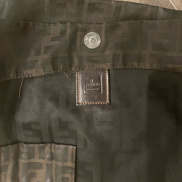 Fendi Bag handle needs to be repaired please see pictures. One side of the corner edge of bag is worn more than the other side. Inside the bag it’s in tact zipper is workable, no tears or stain.