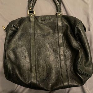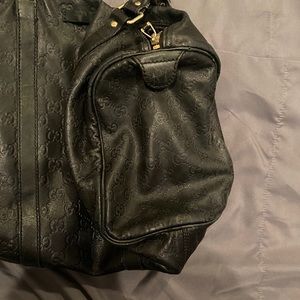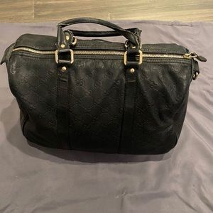 Black Boston Gucci Bag. No stains inside zipper is intact. Black is a bit faded comes with Gucci bag. Comes with wallet color also is a bit faded but still in good condition. Selling handbag and wallet together