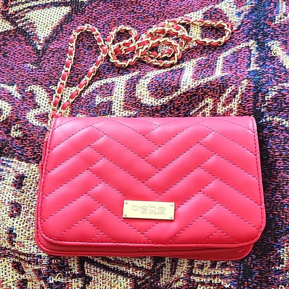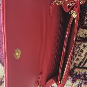 red handbag with diagonal design stitching. long strap to use as a crossbdy. only used once.