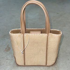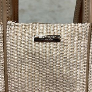 woven bag, leather details