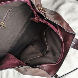 brand new leather purse. Never used. Dark maroon color. Beautiful purse just not what I was looking for.