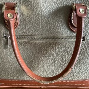 Leather handbag with wear on handles. I’ve wrapped different silk scarfs around the handles to spritz up the bag and hide the wear.