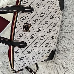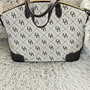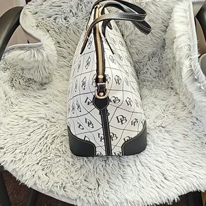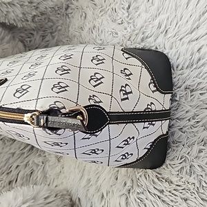 Black and white Dooney Bourke has no spots on the bag. It has been kept in plastic and has only been used a couple of times.