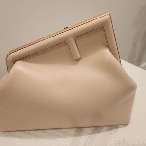 Brand new Fendi handbag/shoulder bag in warm beige/cream color with slight pinkish tone. Pure leather with gold metal. It's brand new with its handle and belt still in its package. Come with dust bag of course.