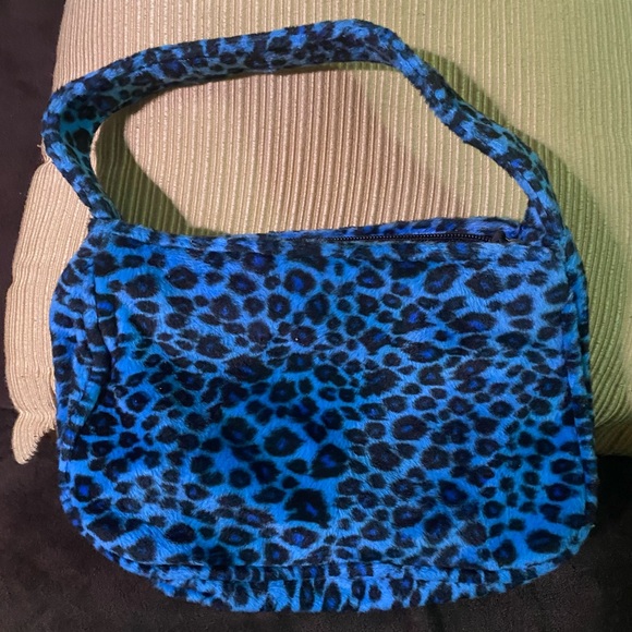 Animal print handbag with vinyl lining and zippered inside pocket for small items