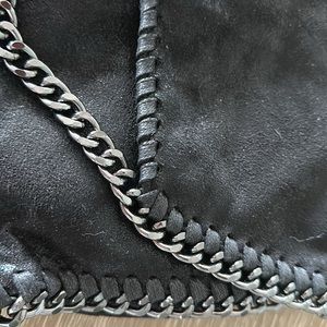 Merci Handbag. Can be carried as a clutch or shoulder bag. Beautiful black hematite hardware. Chain feels very expensive. Sueded material which is very pliable. Measures 10”x8”