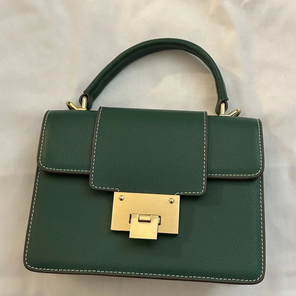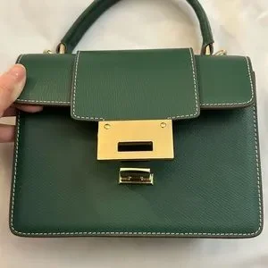 This charming green handbag features a dainty golden buckle and an adorable handle, offering versatility in its wear. Whether held by hand or worn crossbody using the included strap, the bag adapts to your style.